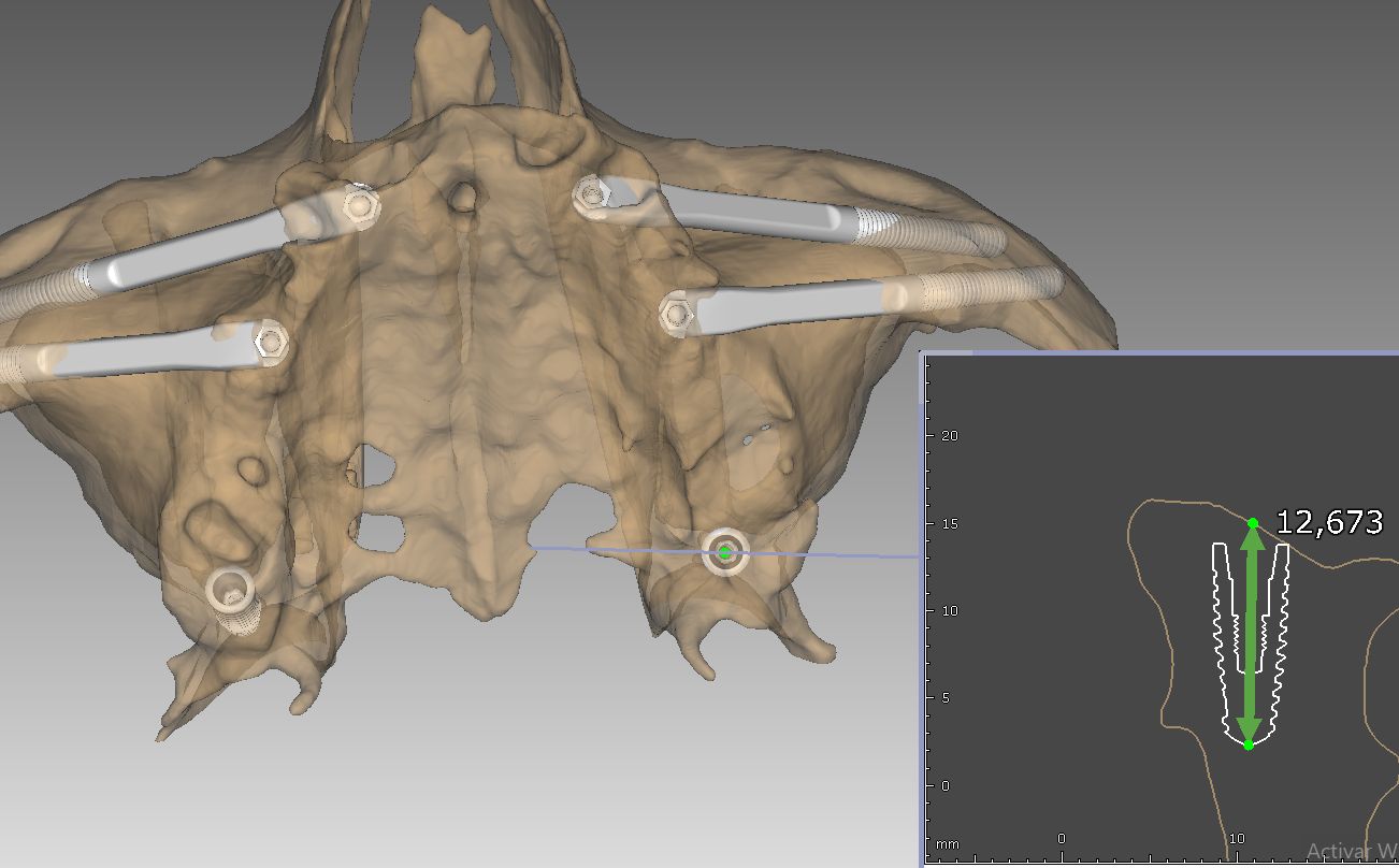 Es una técnica innovadora donde el implante atraviesa una pequeña porción de la cavidad nasal para anclarse en hueso duro opuesto. Se utilizan en casos muy específicos para ganar estabilidad en la zona anterior del maxilar cuando el hueso es inexistente.